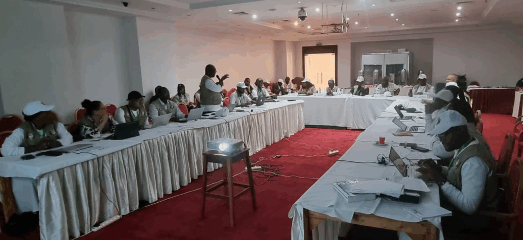 ECOWAS Election Situation Room officials brief Head of Mission Ambassador Kamara on activities from the field